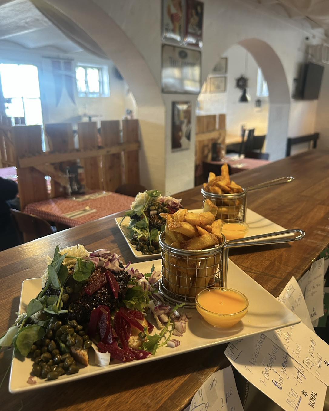 Restaurant Kælderen er hyggelig, intim og med et menukort fyldt med lækker mad til fornuftige priser. Her handler det om kærlighed til klassikerne – højtbelagt smørrebrød, fristende stjerneskud, deres kendte bøfsandwich og mormor-retter fyldt med nostalgi. Maden er lavet fra bunden, krydret med hygge og severet med et smil.